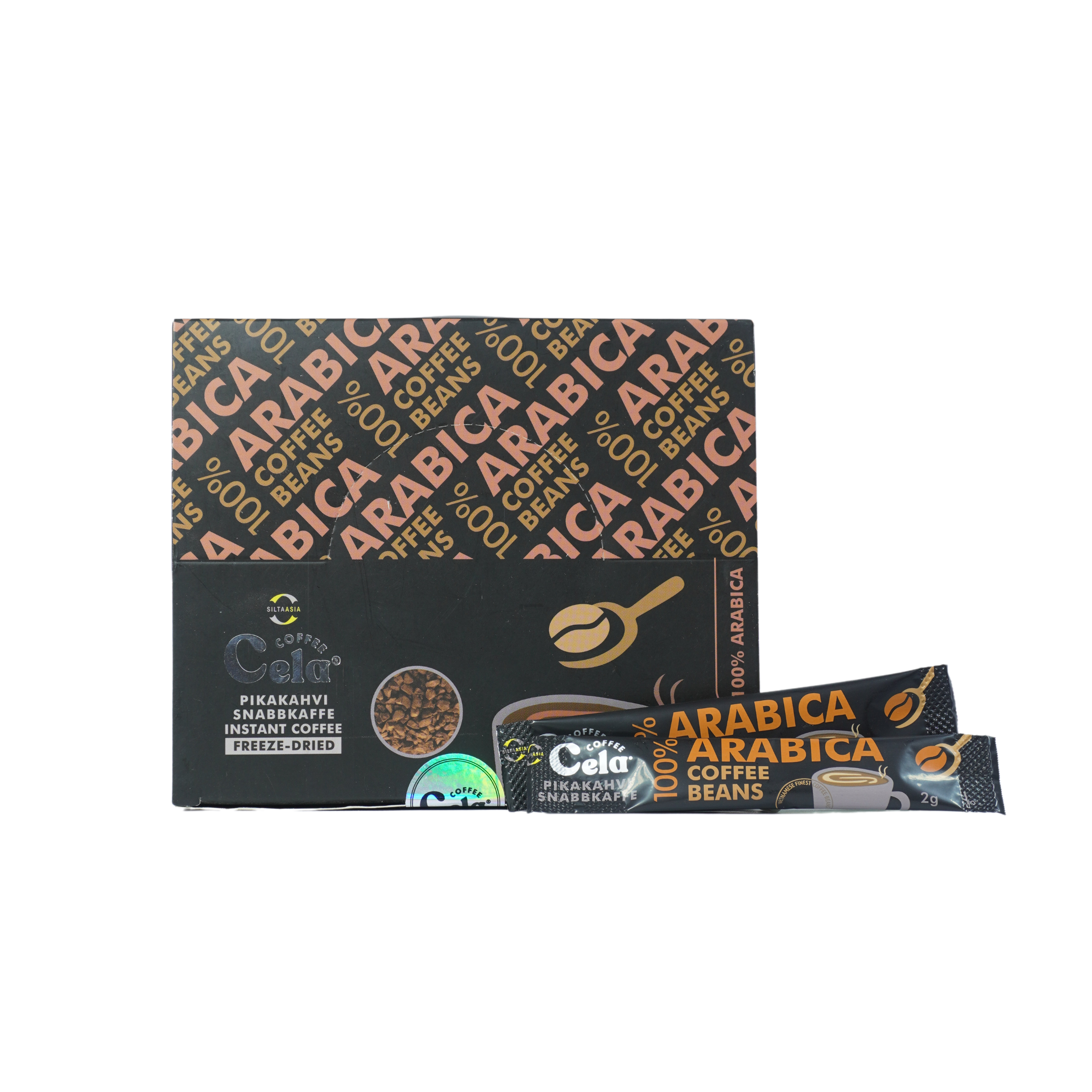 This Cela freeze-dried instant coffee is the perfect choice for home use, for office mornings when you need an energy boost, on vacation, or even while camping with the 2g sachet package. Easy to prepare and highly soluble, it saves you time and effort, dissolving instantly without needing a spoon!